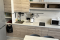 - Функциональное кухонное пространство. Есть все необходимое (посуда, кастрюли, сковородки, кружки, бокалы, столовые приборы и т. д.). В наличии минимальный набор продуктов: растительное масло, соль, сахар, чай, кофе.